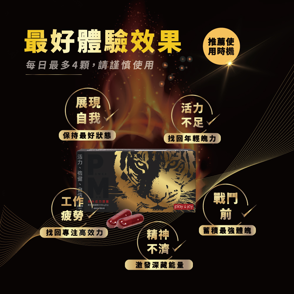 Take 1-2 capsules after breakfast and dinner daily to easily enhance physical fitness and vitality. Experience the powerful effects of PLAY & JOY POWERMAN Maca Vitality Capsules now and inject more energy into your life!