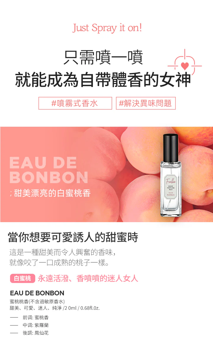 私密處護理推薦!Foellie 香氛噴霧 20ml,黑玫瑰/黑櫻桃/蜜桃香型,全天候保持清新舒適。 Foellie 私密處護理香氛噴霧 20ml,蜜桃香/黑櫻桃/黑玫瑰,快速去除異味,保持私密清新舒適。 Foellie 私密處香氛噴霧,11種天然植物精華,溫和護理私密肌膚,3秒去除異味,長效持香。 Foellie 私密處護理香氛噴霧 20ml,預防異味,平衡 pH 值,適合運動後、經期及日常使用。 私密處護理推薦!Foellie 香氛噴霧 20ml,黑玫瑰/黑櫻桃/蜜桃香型,全天候保持清新舒適。 Foellie 私密處護理噴霧,天然植物精華,無酒精配方,適合敏感肌膚,輕鬆告別異味困擾。 Foellie 私密處護理香氛噴霧 20ml,蜜桃香/黑櫻桃/黑玫瑰,快速去除異味,保持私密清新舒適。 Foellie 私密處香氛噴霧,11種天然植物精華,溫和護理私密肌膚,3秒去除異味,長效持香。 Foellie 私密處護理香氛噴霧 20ml,預防異味,平衡 pH 值,適合運動後、經期及日常使用。 Foellie 私密處護理噴霧,天然植物精華,無酒精配方,適合敏感肌膚,輕鬆告別異味困擾。 Foellie 私密處護理香氛噴霧 20ml,蜜桃香/黑櫻桃/黑玫瑰,快速去除異味,保持私密清新舒適。