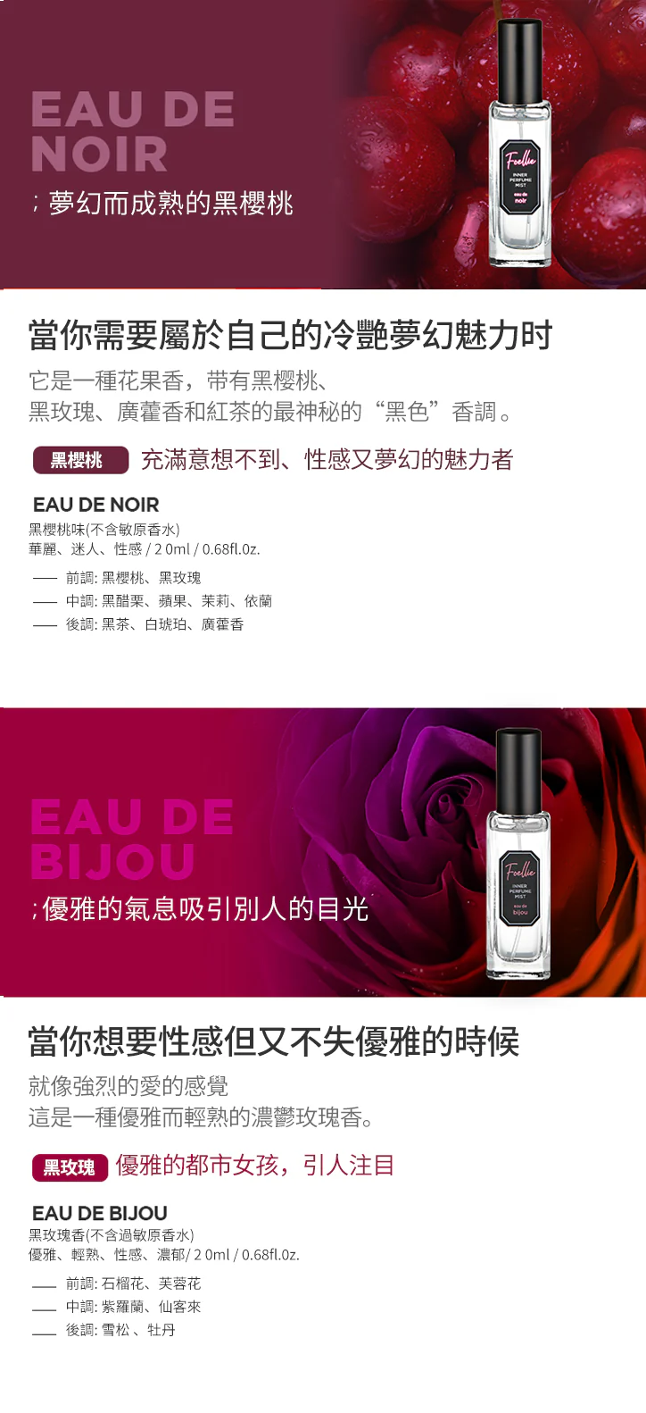 Foellie 私密處護理香氛噴霧 蜜桃香/黑櫻桃/黑玫瑰 20ml