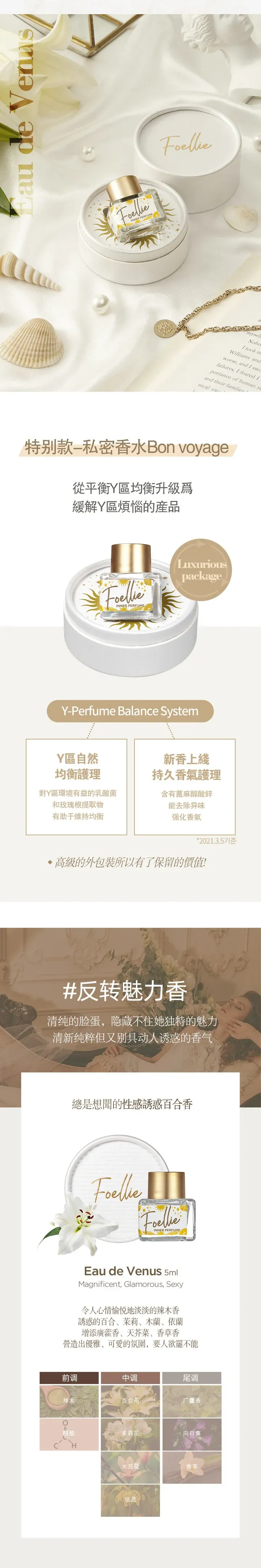 Foellie 私密處護理香氛香水特別款(3種香味 5ml),為私密處帶來清新舒適體驗。專為解決下體異味及維護私密處健康而研製,其精油配方由6種純天然植物油調配,不含水與酒精,溫和低剌激,適合日常使用。