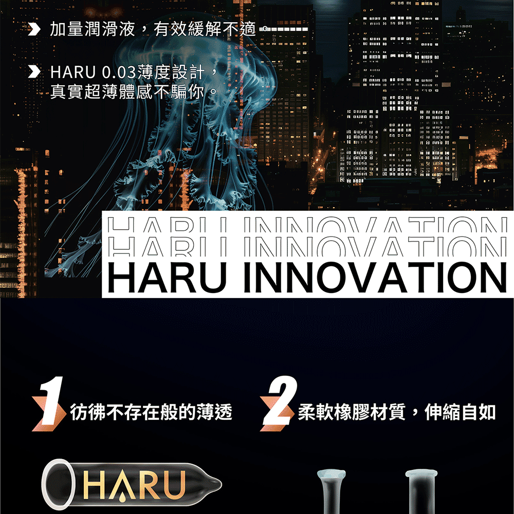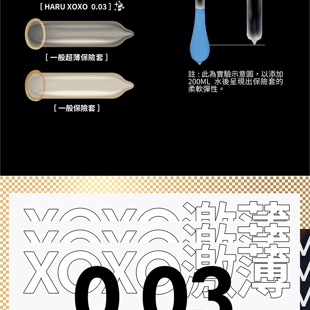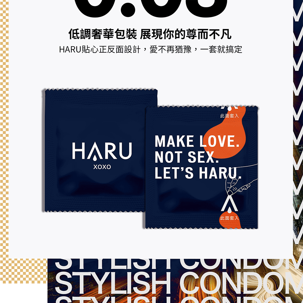 HARU XOXO 0.03 舒暢激薄款安全套是HARU推出的首款0.03毫米超薄保險套,專為追求極致貼合感與舒適度的使用者設計。這款安全套採用天然橡膠材質製成,柔軟的直身設計能夠提供無與倫比的真實體感,同時搭配加量潤滑液,確保每次的親密接觸都順暢舒適。極薄設計讓您幾乎感受不到它的存在,真正體驗毫無束縛的性愛享受。