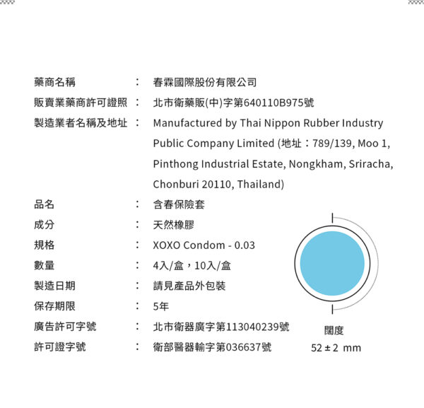 • 型號:XOXO 0.03舒暢激薄款