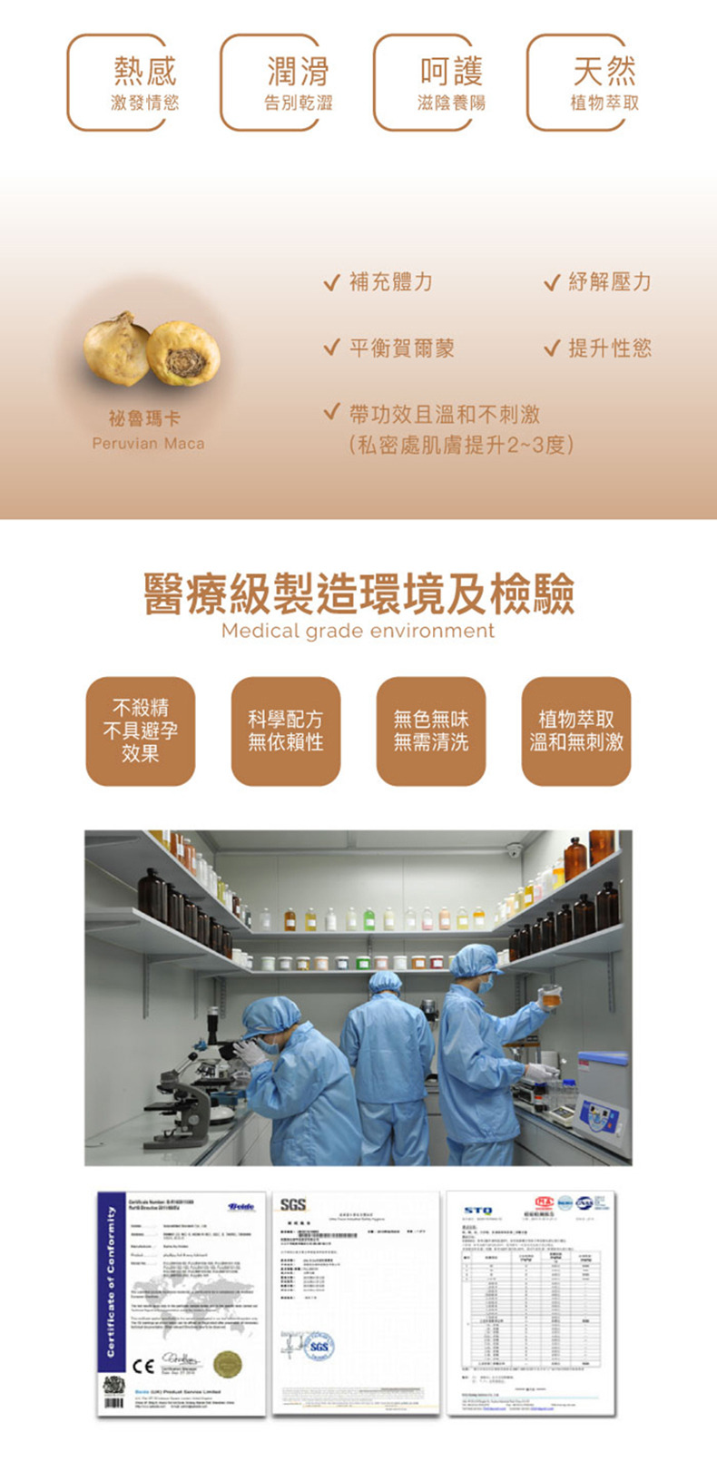 • 瑪卡萃取:天然成分,有助女性緊緻肌膚和提升親密愉悅感。