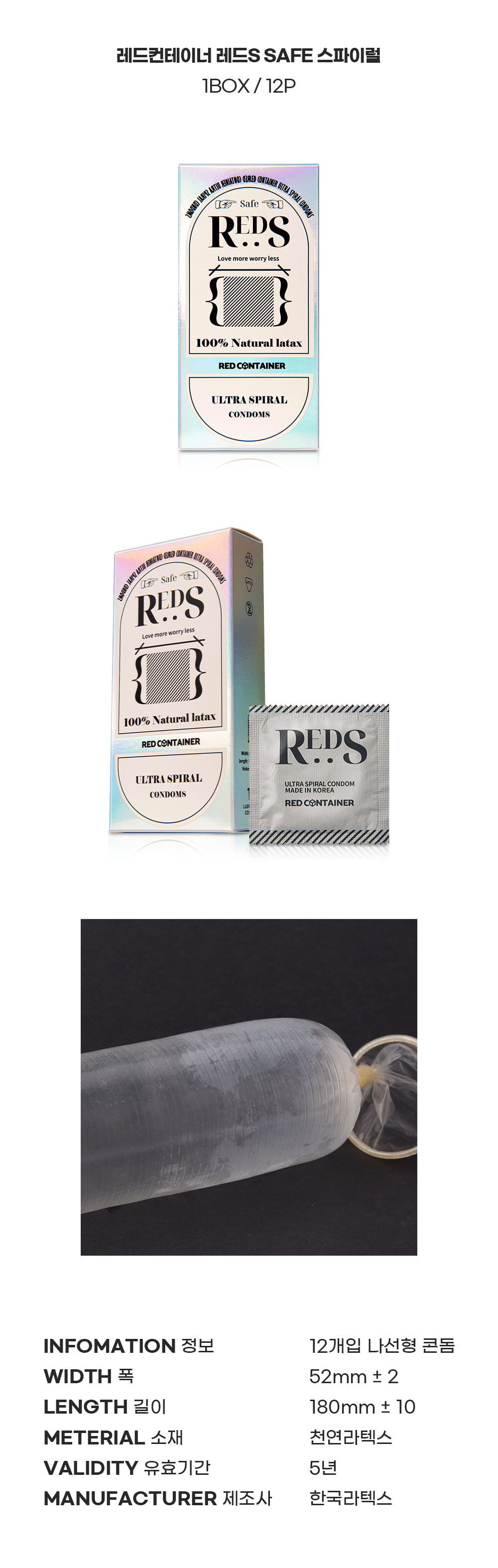 Red Container REDS SAFE 超薄螺紋安全套 12片裝來自韓國知名品牌,專為追求高敏感度與舒適體驗的使用者設計。此款安全套採用極薄設計,幾乎感覺不到其存在,為使用者提供貼近肌膚的自然感受。螺旋紋路設計則進一步增添刺激感,為雙方帶來更深層的愉悅體驗。超薄與螺紋的雙重結合,不僅提高了快感,更確保了佩戴時的舒適度,讓親密時光更為享受。