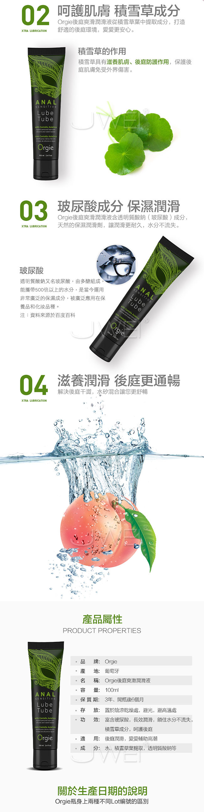 - 透明質酸成分:滋潤並提升後庭皮膚彈性