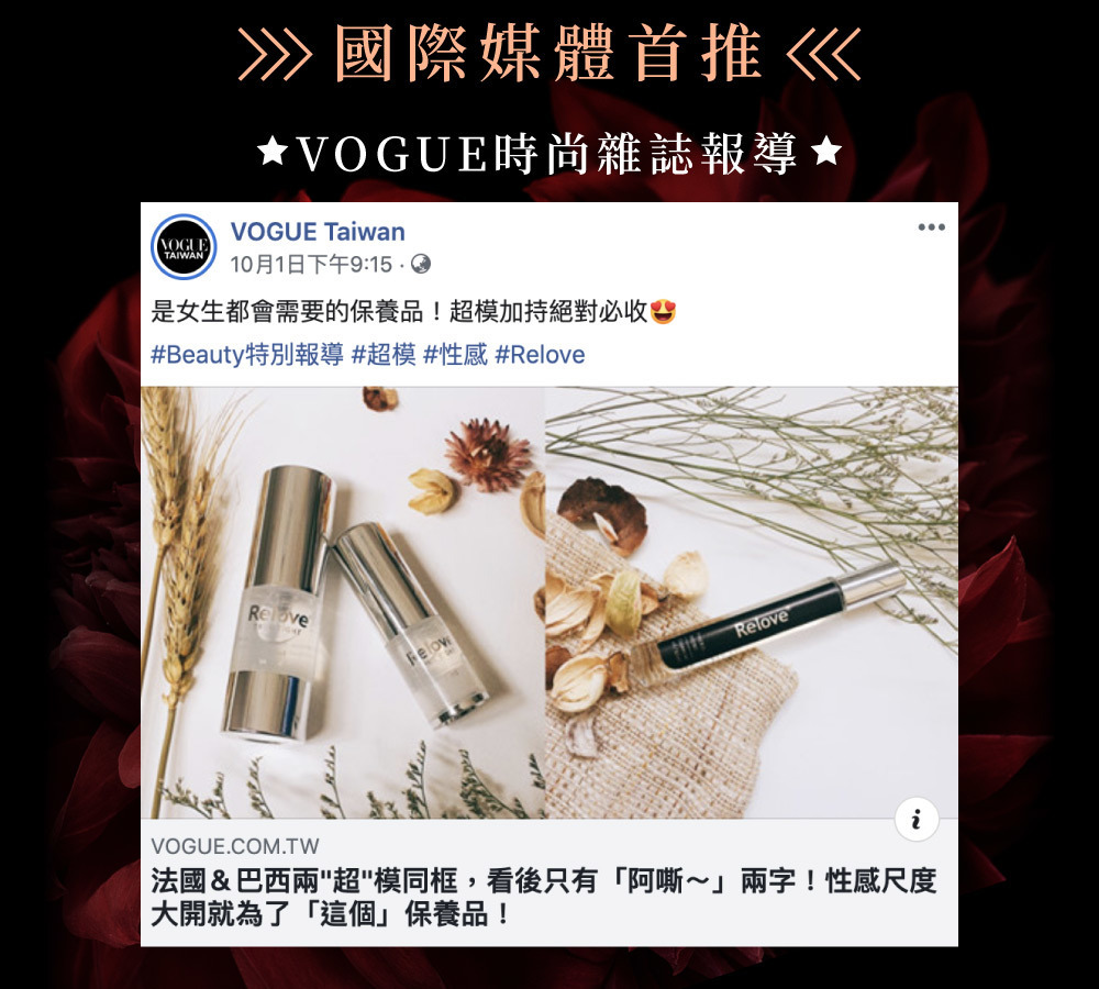- 荣获 VOGUE CP值加颜质私密保养 报道分享