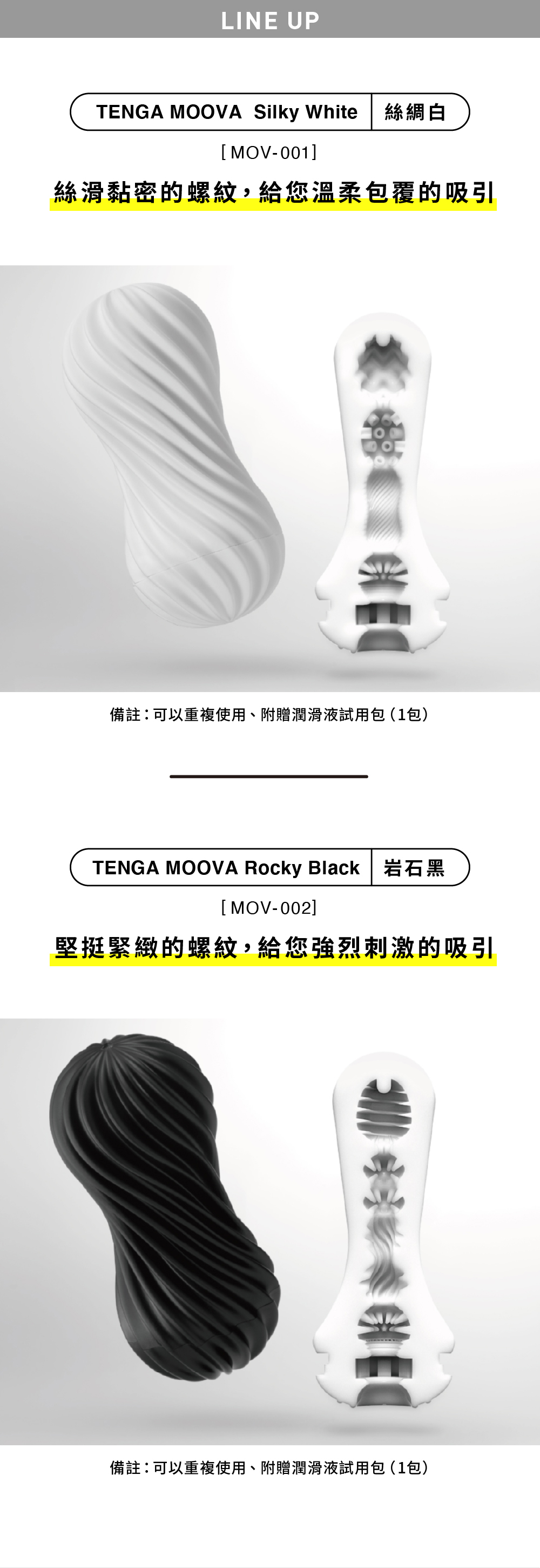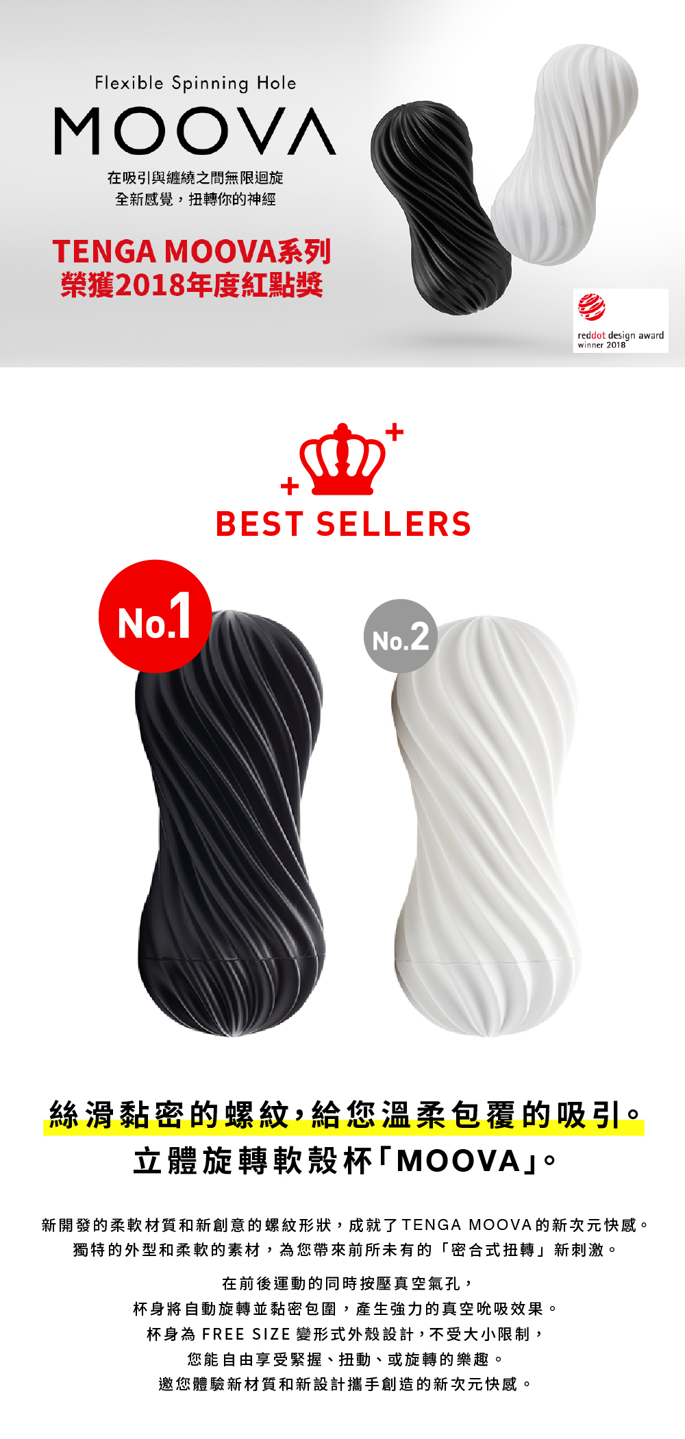 新开发的柔软材质和新创意的螺纹形状,成就了TENGA MOOVA的新次元快感。