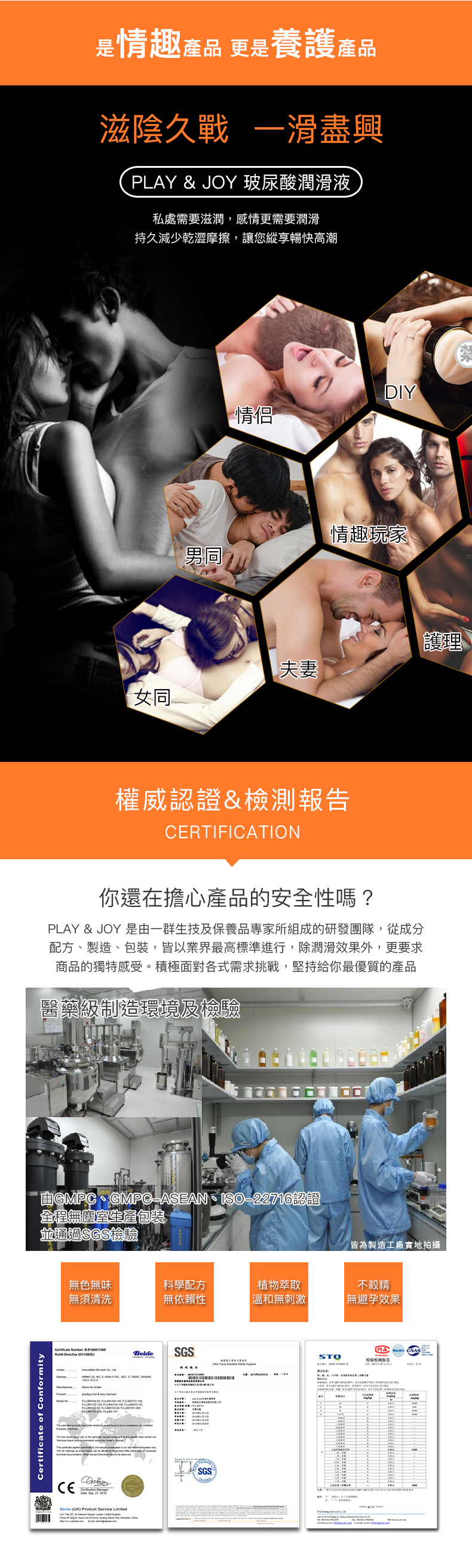 立即選購 PLAY & JOY 絲滑水性潤滑劑,享受絲綢般的柔滑觸感和溫和滋潤,讓每一次親密時刻都舒適自然。